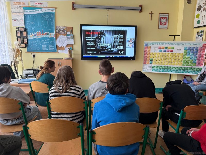 W środę, 18 lutego 2026 r., uczniowie klas 4–8 naszej szkoły uczestniczyli w webinarze pt. „Hejt i przemoc w sieci”. Spotkanie zostało przygotowane przez Urząd Komunikacji Elektronicznej. Zajęcia prowadzili przedstawiciele Wydziału Kampanii Edukacyjno-Informacyjnych Departamentu Polityki Konsumenckiej UKE.